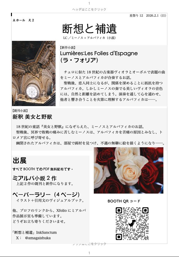 「星祭り」12 |サークルご案内 Notes X Facebook はてブ LINE コピー 2025.12.102026.01.19 スポンサーリンク 「星祭り」12 |サークルご案内 準備中🙇♀️ お品書き InkSanctum