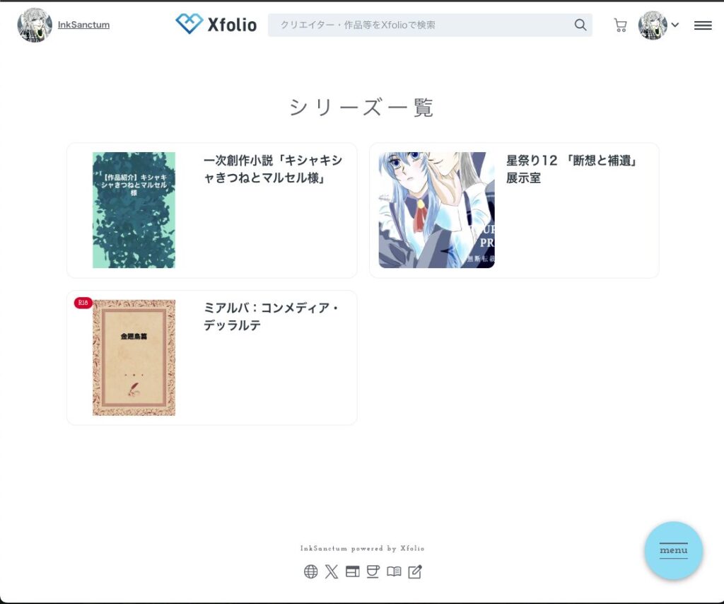 Xfolioは、このように、「シリーズ」で作品同士をひとまとまりにできます。